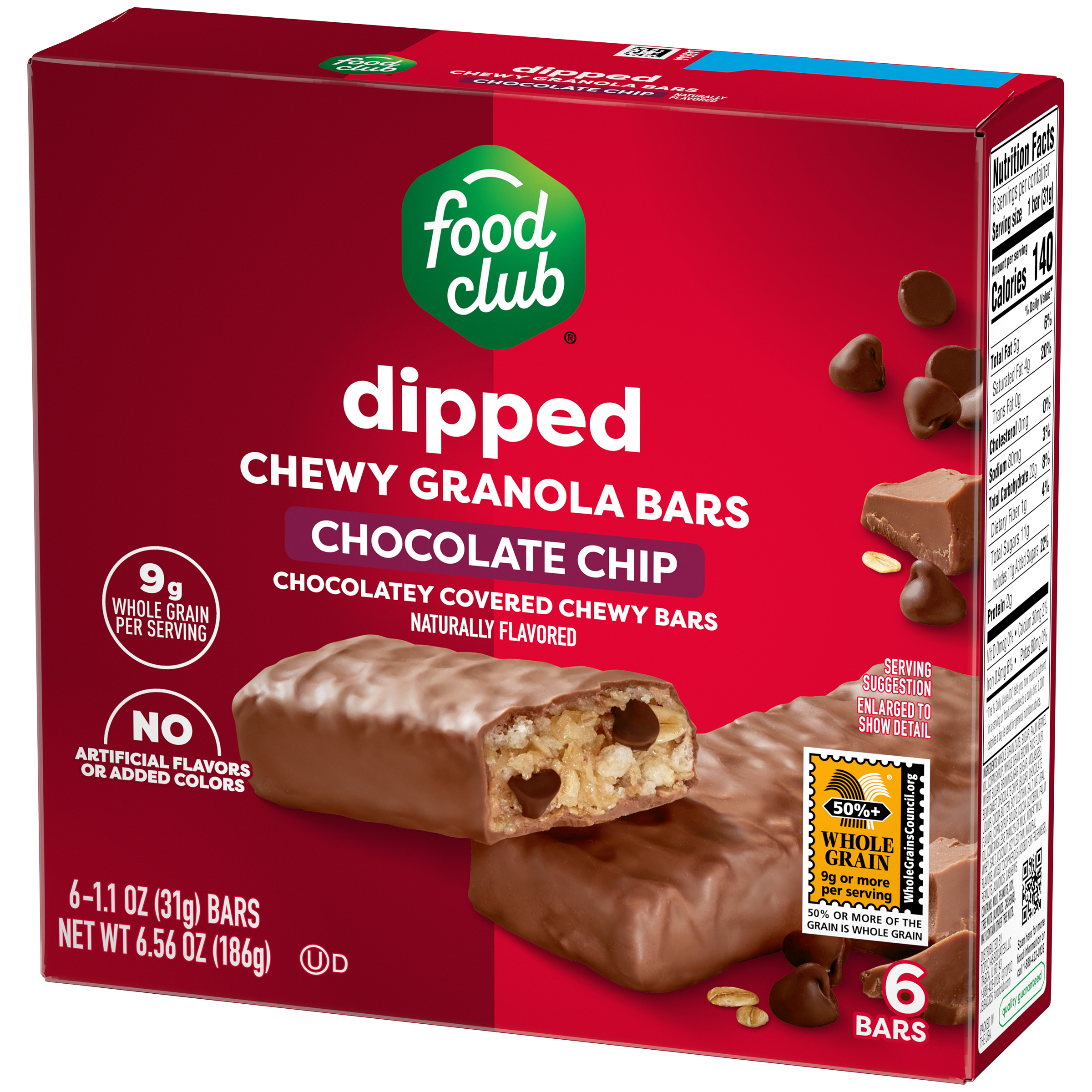 Food Club Dipped Chewy Chocolate Chip Granola Bars 6 - 1.1 oz Bars