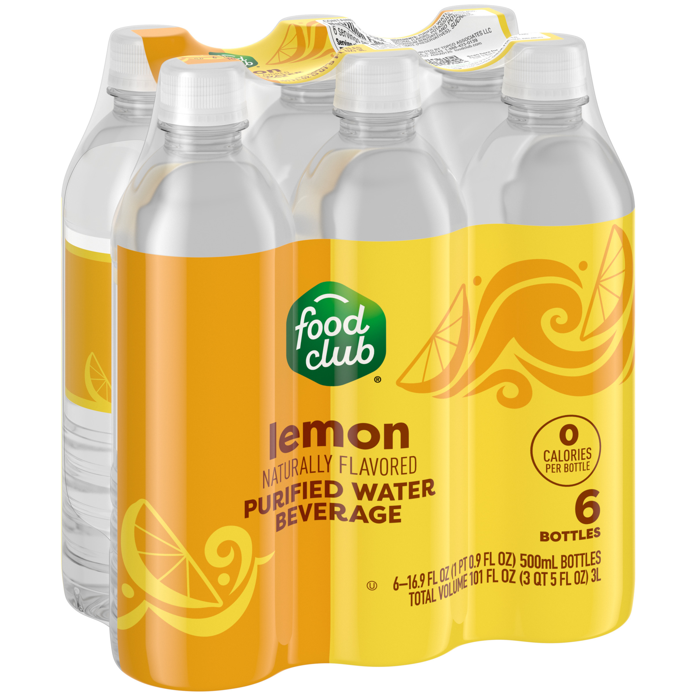 Food Club Lemon Purified Water Beverage 6 - 16.9 fl oz Bottles