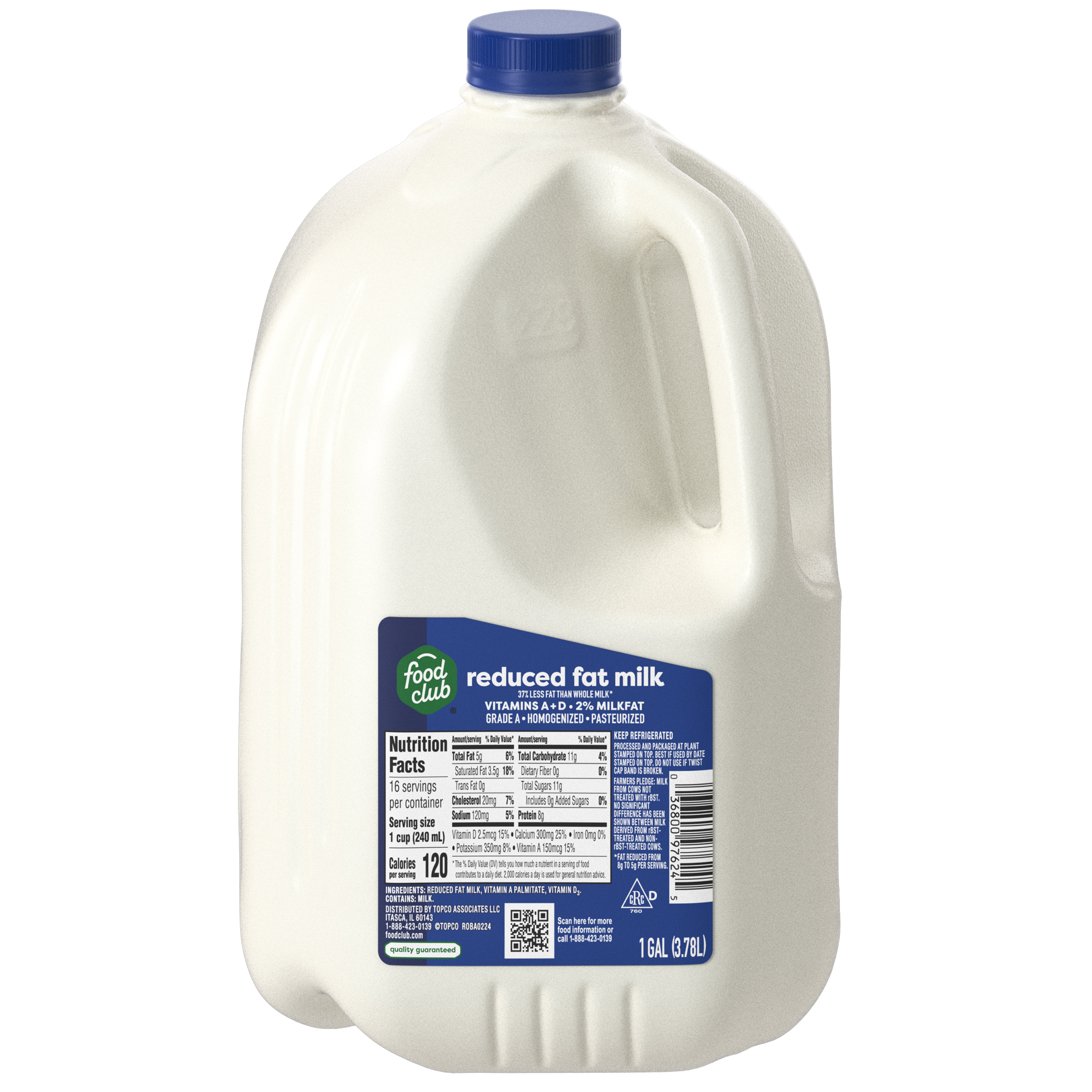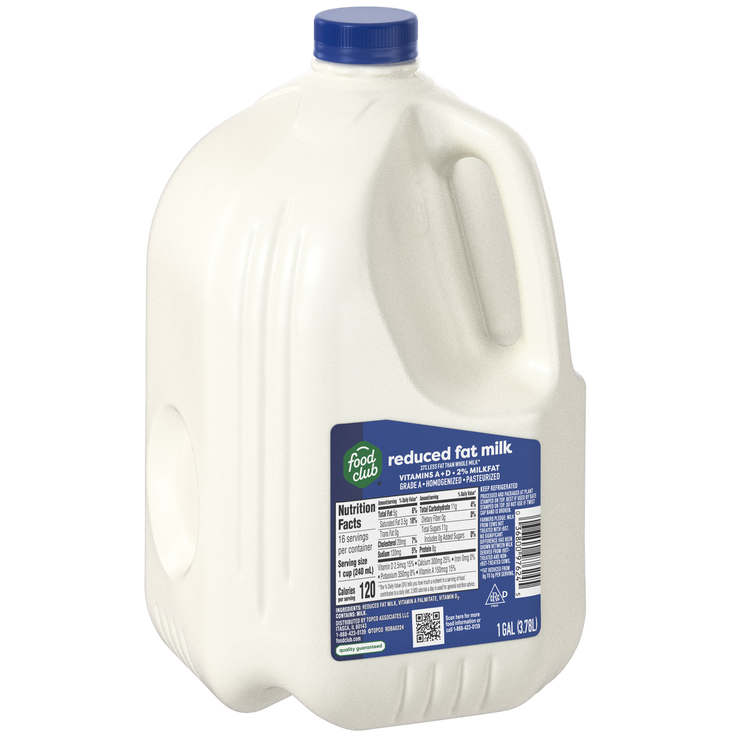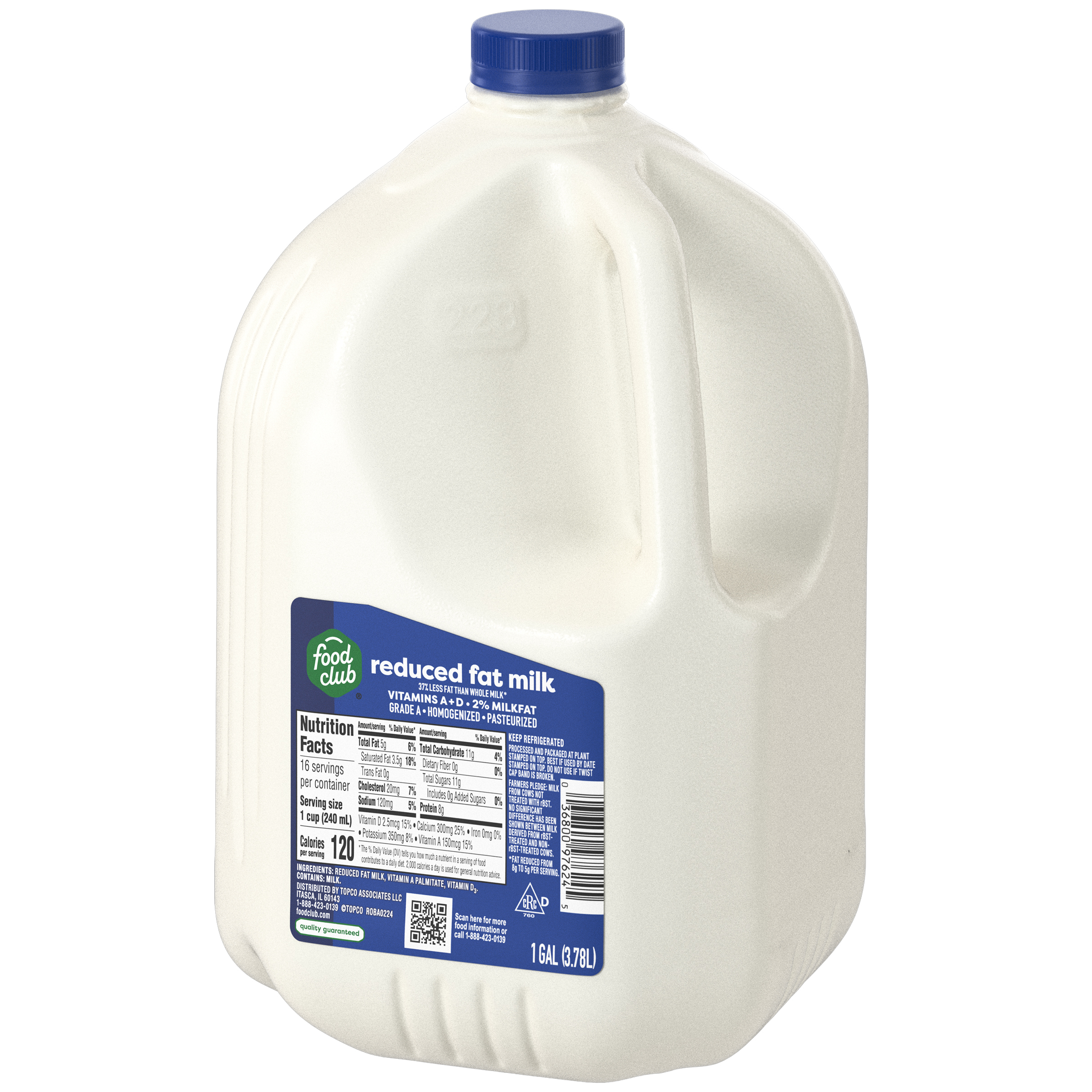 Reduced fat. 37% less fat than whole milk*. Vitamins A + D. *Fat reduced from 8 g to 5 g per serving.